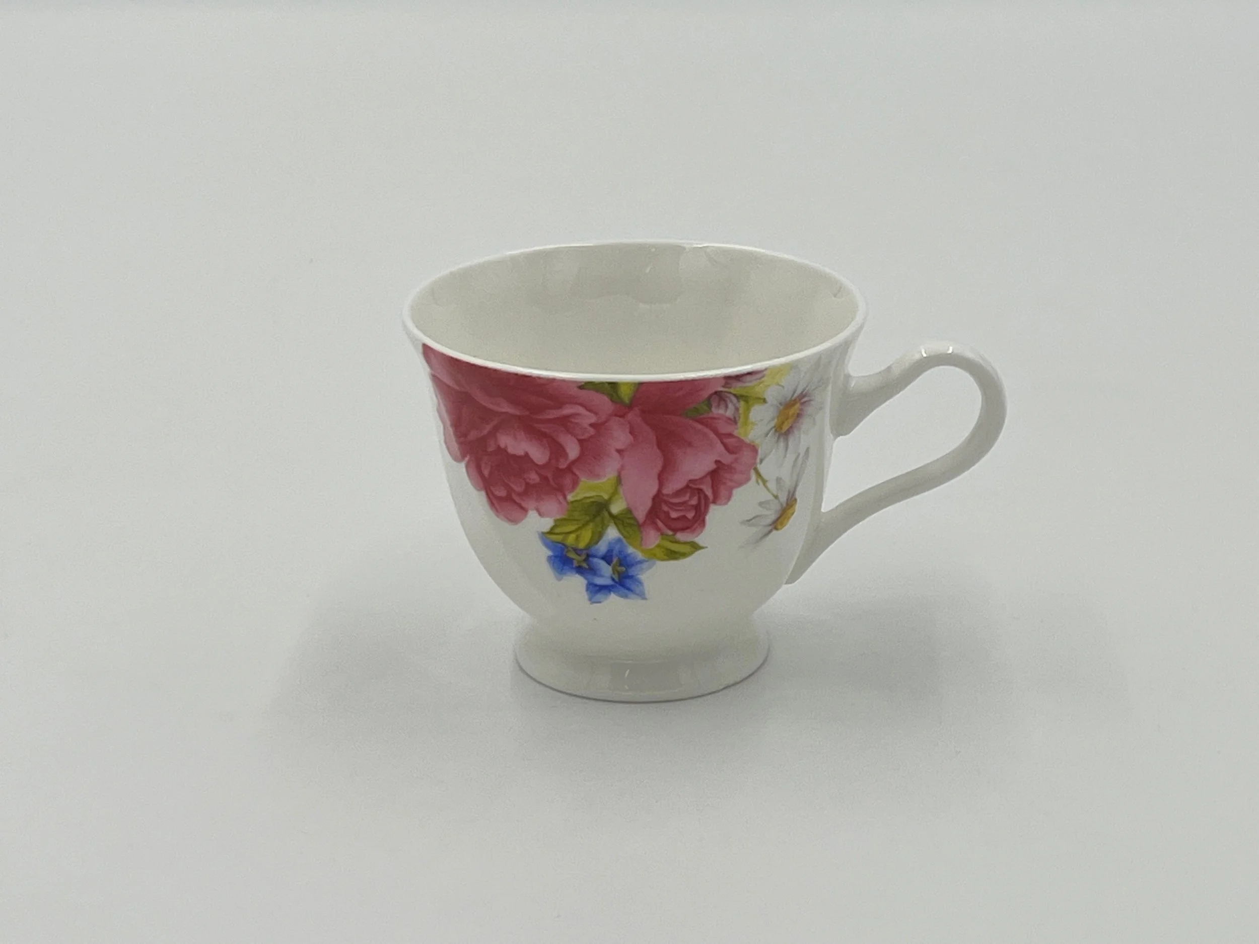 Vintage Porcelain Teacup with Colorful Floral Design Featuring Roses and Daisies